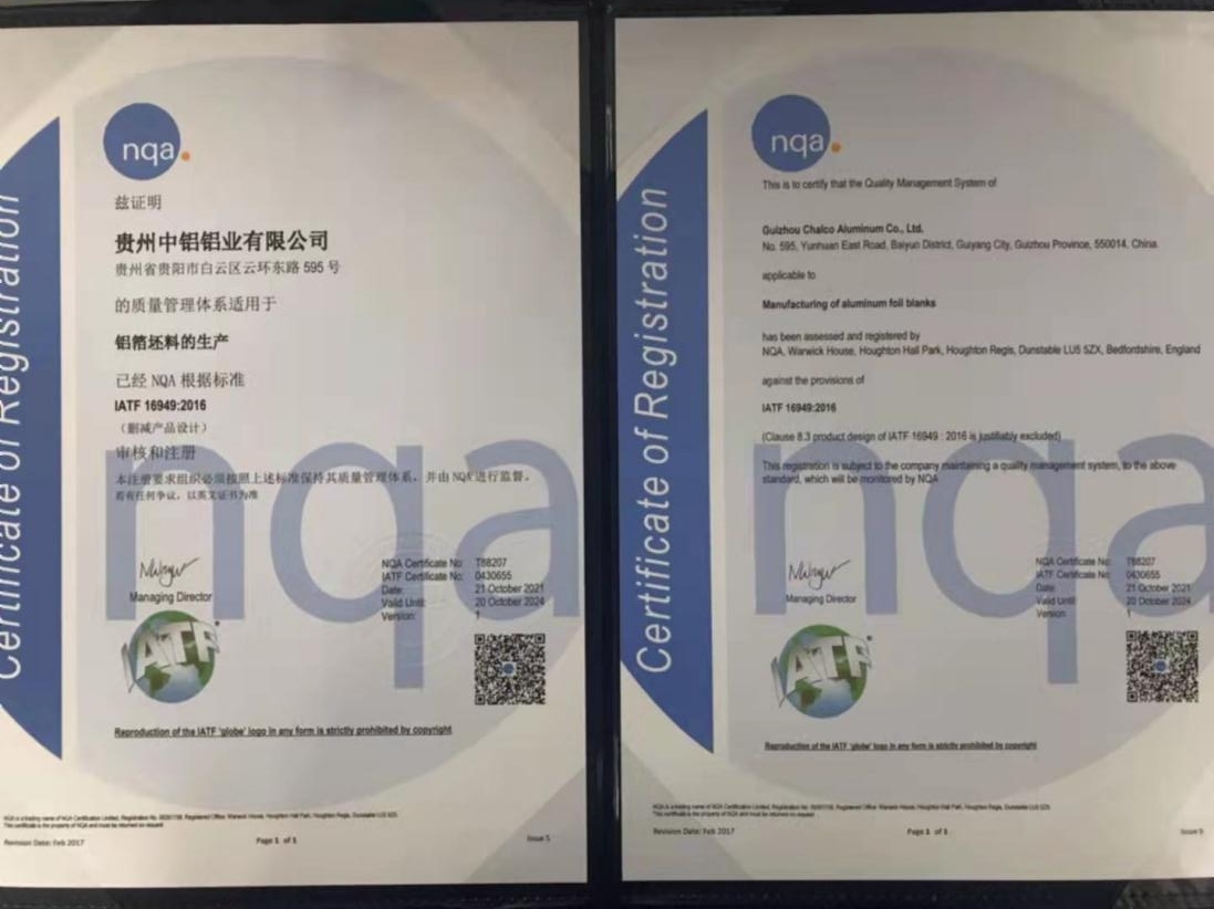 為了向高端電池箔坯料市場及超薄鋁箔坯料轉(zhuǎn)型,助推企業(yè)高質(zhì)量發(fā)展,2021 年以來,在公司黨支部書記、董事長朱玉才、總經(jīng)理蔡海濤的共同謀劃下,通過各部門協(xié)調(diào)配合,貴州中鋁于10月27日獲得IATF16949認(rèn)證證書。